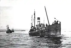 A las 13:30, el submarino UC-25 torpedeó al Dartmouth, causándole graves daños. Los destructores que lo escoltaban ahuyentaron al UC-25, pero el Dartmouth tuvo que ser abandonado por un período de tiempo antes de poder ser remolcado de regreso al puerto. El destructor francés Boutefeu intentó perseguir al submarino alemán, pero chocó contra una mina colocada por el UC-25 esa mañana y se hundió rápidamente. [10]