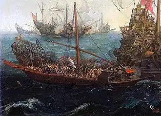 ![]() Galeras españolas contra galeones. Hendrik Cornelisz. Vroom, 1602. | ||||