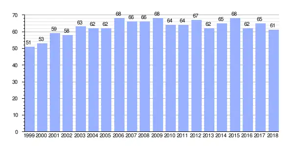 | Gráfica de evolución demográfica de Beade entre 1999 y 2018 |