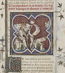 Decapitación de Pedro I (manuscrito del siglo XIV).