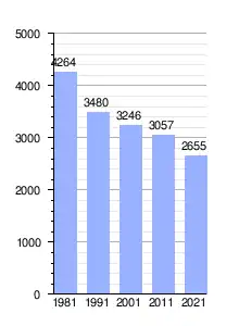 | Gráfica de evolución demográfica de Bedmar y Garcíez[6] entre 1981 y 2021 |