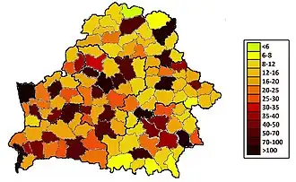 - ↑ a b c https://belstat.gov.by/homep/ru/perepic/2009/vihod_tables/5.11-0.pdf (Memento vom 18. Oktober 2013 im Internet Archive)