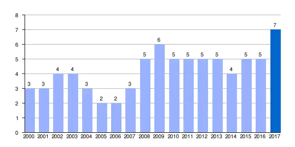 | Gráfica de evolución demográfica de Bellojín[6] entre 2000 y 2017 |