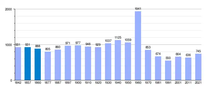 | Gráfica de evolución demográfica de Belvís de Monroy[9] entre 1842 y 2021 |