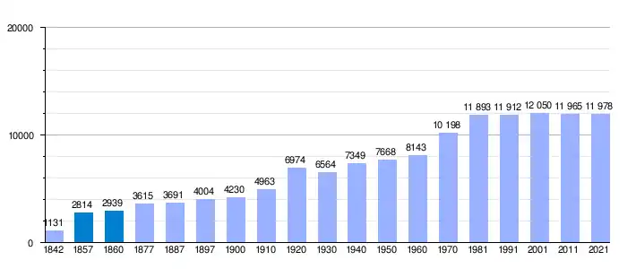Gráfica de evolución demográfica de Benifayó[54]​ entre 1842 y 2021