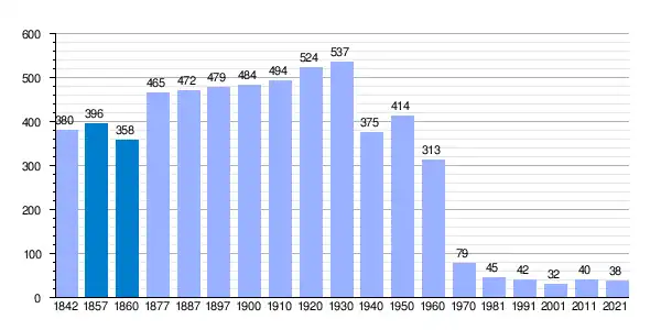 | Gráfica de evolución demográfica de Beratón[6] entre 1842 y 2021 |