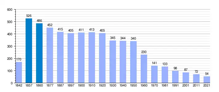 | Gráfica de evolución demográfica de Berberana[3] entre 1842 y 2021 |