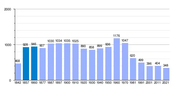 | Gráfica de evolución demográfica de Berlanga del Bierzo[13] entre 1842 y 2021 |