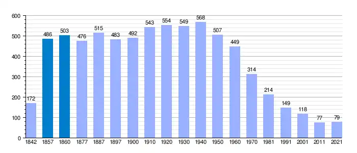 Población de derecho según los censos de población del INE Población de hecho según los censos de población del INEEntre el censo de 1857 y el anterior, crece el término del municipio porque incorpora a 375014 (Coca de Huebra)[6] |