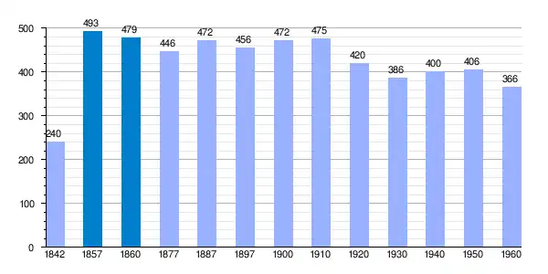 | Gráfica de evolución demográfica de Berzosa[5] entre 1842 y 1960 |