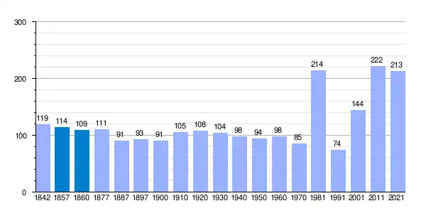 | Gráfica de evolución demográfica de Berzosa del Lozoya[4] entre 1842 y 2021 |