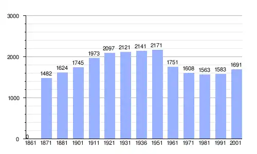 | Gráfica de evolución demográfica de Bevilacqua entre 1861 y 2001 |
