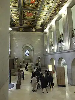 En el primer piso se encuentra el Gran Salón, una gran sala de lectura coronada por una cúpula. En esta planta se puede ver gran parte del mobiliario original diseñado por el arquitecto. Alrededor del borde de la cúpula hay una inscripción del Libro de Proverbios en el Antiguo Testamento.