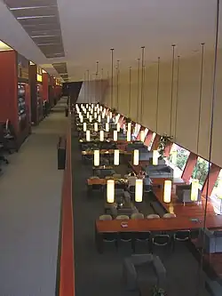 Terraza - La terraza de la Biblioteca permite apreciar la Plaza de Cisneros, la Estación del Ferrocarril, la Alpujarra y un agradable paisaje de las montañas que rodean por el oriente a la ciudad de Medellín. Salas de Investigadores - Son cuatro salas con capacidad para quince personas cada una, acondicionadas para el desarrollo de actividades de los grupos de investigación, en las cuatro áreas de especialidad de la Biblioteca.