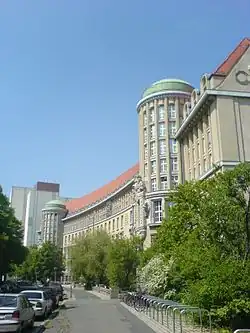 El edificio principal de la Biblioteca Nacional Alemana de Leipzig fue construido entre 1914 y 1916 según los planos del arquitecto Oskar Pusch. La impresionante fachada tiene 160 metros de largo y da a la "Deutscher Platz" (Plaza Alemana). El edificio se inauguró el 19 de octubre de 1916. El solar de la biblioteca había sido donado por la ciudad de Leipzig, mientras que Friedrich August III, Rey de Sajonia aportó los fondos para la construcción. En la fachada se encuentran los retratos de Otto von Bismarck, Johann Wolfgang von Goethe y Johannes Gutenberg. Las estatuas representan la tecnología, la justicia, la filosofía, la medicina, etc. La sala de lectura central contiene un cuadro de Ludwig von Hofmann que representa la Arcadia en estilo Art Nouveau. En la escalera hay un mural con los fundadores de la biblioteca alemana. En la Biblioteca también se encuentra el Museo Alemán del Libro y la Escritura. La cuarta ampliación de la biblioteca comenzó en 2007 y se abrió al público el 9 de mayo de 2011. Fue diseñada por Gabriele Glockler, cuyo concepto para el edificio fue "Cover. Caparazón. Contenido". Conecta por primera vez todas las secciones del edificio.[20]