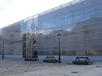 Los autores del proyecto son los arquitectos Andrés Celis y Jael Ortega. El edificio se concibe como un volumen monolítico y aparentemente homogéneo, con una piel continua de vidrio serigrafiado. Esta envoltura no es sino la hoja externa de una doble cubierta que reviste zonas opacas, transparentes y traslúcidas, englobando también la fachada gótica, que queda así integrada en la composición del edificio.