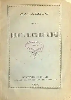 - ↑ Labatut, Adolfo. Catálogo de la Biblioteca del Congreso Nacional 1921-2, Imprenta Cervantes, Santiago.
