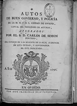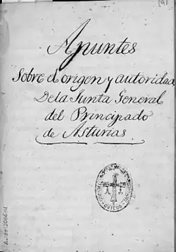 Ejemplar de la bibliotecaFONDO HISTÓRICO o BIBLIOTECA de la CPMHA. Constituye una sección propia, y se conoce como la Biblioteca de la Comisión. Está formada por cerca de 3.500 registros, reunidos desde 1844 a 1952 que responden a los intereses de la institución, en una época determinada y por quienes estuvieron al frente de sus compras y adquisiciones (Ciriaco Miguel Vigil, Fermín Canella, Fortunato de Selgas, Rafael Altamira, etc). Predominan las siguientes materias: epigrafía, numismática, antigüedades, arqueología clásica, historia del arte, medallas, marfiles, bellas artes, antigüedades, asuntos de temas asturianos, etc. La mayoría fueron impresos entre 1870 y 1930 y su procedencia es muy diversa. Ingresaron por compra, por donación de su autor o poseedor y por intercambio entre las instituciones de historia, de estudios locales o de museos provinciales. Hay ediciones francesas de enciclopedias de arte, de arte clásico, de antigüedades, ediciones sobre las primeras excavaciones arqueológicas en el siglo XIX, las obras principales del siglo XIX en materia de prehistoria y arqueología. Conserva una obra extraordinaria: Monumentos Arquitectónicos de España, considerada el proyecto más ambicioso desde el punto de vista bibliográfico de los acometidos en España. Esta obra fue impresa para estudiar y difundir el patrimonio artístico de todo el país, y entre él, el asturiano. Publicada bajo la dirección de una comisión especial creada por el Ministerio de Fomento, entre 1856 y 1881, en su parte gráfica se emplearon con gran precisión las técnicas del grabado calcográfico, la litografía y la cromolitografía. También destacan ediciones facticias que reúnen documentos y folletos muy variados agrupados por temas de interés: Temas de Asturias, Escritos políticos, Historia, etc. Hay documentos de interés escritos en lengua asturiana que permitieron profundizar en el estudio de esta lengua: hojas sueltas, poemas y manuscritos. Y también textos manuscritos, discursos, sermones, cartas, y documentación histórica. Otros materiales curiosos que integran la colección de la biblioteca son materiales efímeros y difícil de conseguir como folletos, publicaciones de pequeño formato, carteles, hojas sueltas, etc.[3]