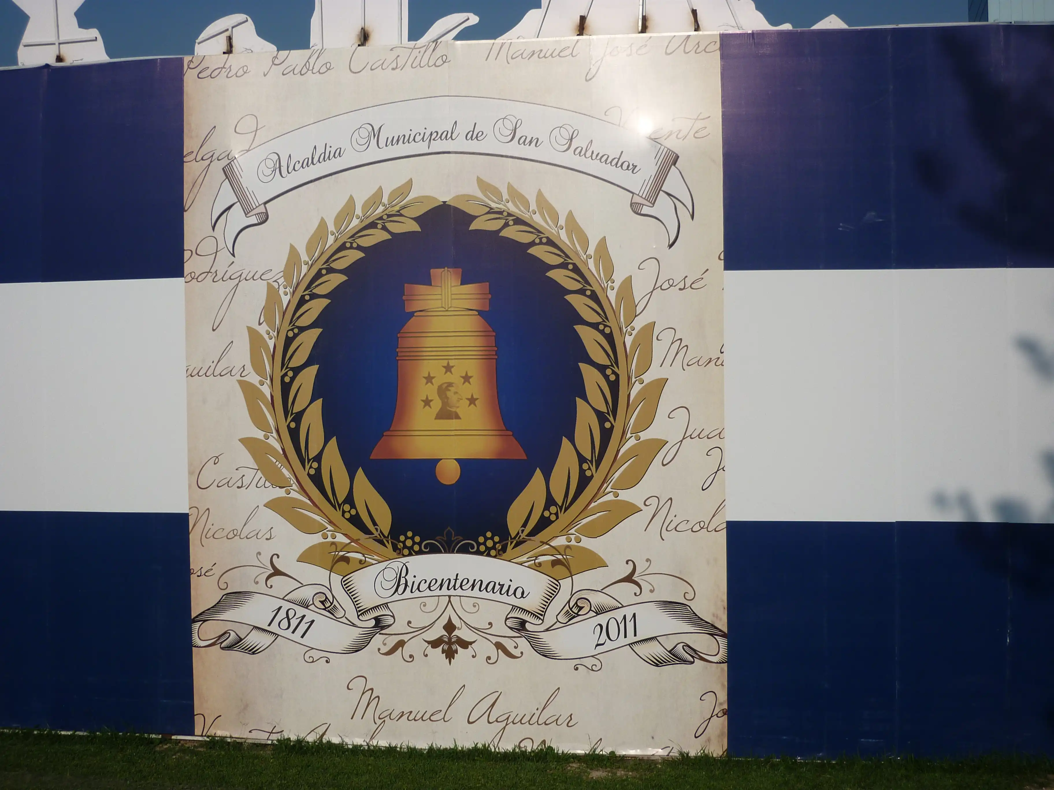 ![]() Imagen usada para identificar las celebraciones del Bicentenario, colocada en una plaza de San Salvador. | ||