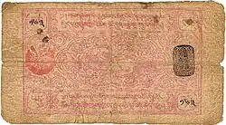 - ↑ Más conocido como tangka o tamga, su valor facial equivalía al de la rupia india de 1912.