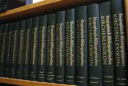 - Friedrich Wilhelm Bautz, desde volumen 3: Traugott Bautz (ed.): Biographisch-Bibliographisches Kirchenlexikon. 14 volúmenes (+ 16 volúmenes de suplementos), Bautz, Hamm 1975ff.
