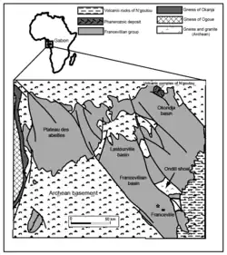 El grupo fósil de Franceville (también conocido como Gabonionta o biota francevillense) es un conjunto de organismos macroscópicos de 2100 millones de años de antigüedad (período Riásico), conocidos a través de los restos fósiles encontrados en Gabón, al oeste de África central, en la Formación Francevillense B, una formación geológica del Paleoproterozoico. Los fósiles se consideran los indicios de las primeras formas de vida pluricelular junto con otro fósil macroscópico Diskagma de hace 2200 millones de años.[1] Los fósiles fueron descubiertos por un equipo internacional liderado por el geólogo franco-marroquí Abderrazak El Albani, de la Universidad de Poitiers, Francia. Aunque los fósiles aún tienen que ser asignados formalmente a una clase taxonómica, el Museo de Historia Natural de Viena los reconoce, de manera informal y colectiva, desde el 2014 con el nombre Gabonionta. La biota incluye un conjunto de 250 géneros.[2] Los fósiles han sido interpretados como mohos mucilaginosos, es decir organismos eucariotas tempranos. La presencia de esteranos y su gran complejidad sugieren que son eucariotas por lo que podrían ser los primeros eucariotas que aparecen en el registro fósil junto con el fósil Diskagma.[3]