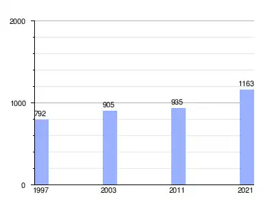 | Gráfica de evolución de Bláskógabyggð entre 1997 y 2021 |
