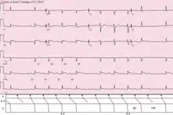 - Bloqueo cardíaco de segundo grado tipo 2 (Mobitz II): un tipo de bloqueo AV debido a un bloqueo dentro o debajo del haz de His[5]
