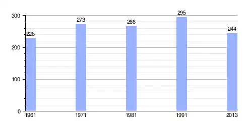 Hasta 2013 la población era de 244 habitantes,[4] con una densidad de población de 170,5 hab/km².[4]