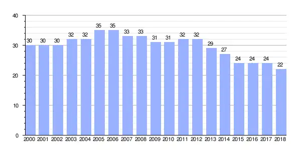 | Gráfica de evolución demográfica de Boimazán entre 2000 y 2018 |