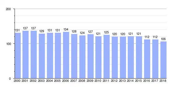 | Gráfica de evolución demográfica de Boiro entre 2000 y 2018 |
