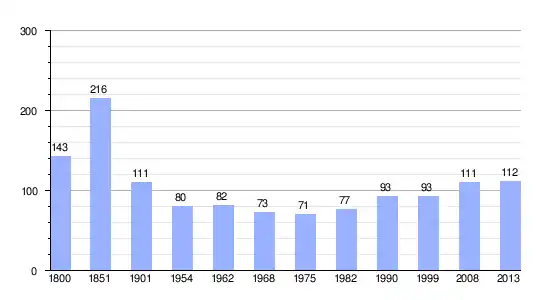 Los datos demográficos contemplados en este gráfico de la comuna de Bonnevaux-le-Prieuré[4] se han cogido de 1800 a 1999 de la página francesa EHESS/Cassini, y los demás datos de la página del INSEE.[5]
