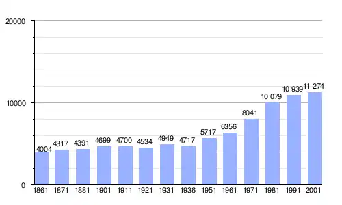 | Gráfica de evolución demográfica de Borgo San Dalmazzo entre 1861 y 2001 |