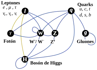 El bosón de Higgs o partícula de Higgs[nota 2] es una partícula fundamental propuesta en el modelo estándar de física de partículas. Recibe su nombre en honor a Peter Higgs, quien, junto con otros, propuso en 1964 el hoy llamado mecanismo de Higgs para explicar el origen de la masa de las partículas elementales. El bosón de Higgs constituye el cuanto del campo de Higgs (la más pequeña excitación posible de este campo). Según el modelo propuesto, no posee espín, carga eléctrica o color, es muy inestable y se desintegra rápidamente: su vida media es del orden del zeptosegundo. En algunas variantes del modelo estándar puede haber varios bosones de Higgs.[10]