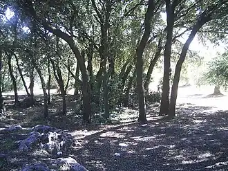 Acoge, en sus poco más de dos hectáreas, una completa representación del ecosistema forestal mediterráneo esclerófilo de encinas y alcornoques.