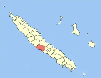 Localización de la comuna (en rojo) dentro de Nueva Caledonia. | ||