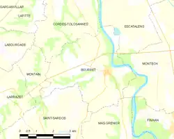 - ↑ INSEE, Datos de población para el año 2012 de Bourret (en francés).