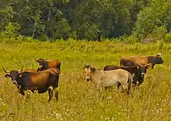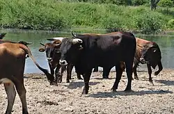 En el parque nacional de Hortobágy, habita la mayor manada de bovino de tauro de unos 200 animales. Además de bovinos de tauro de Alemania se cruzaron con ganado de raza Watusi, también Ganado gris húngaro y cruzado con ganado Holstein.[1] Se formaron dos rebaños, un rebaño principal en Pentezug y el otro en Karácsonyfok.[2] Los estudios en el parque nacional han demostrado que el ganado tauro está menos adaptado a climas secos y fríos y a pastizales estériles comparado a los caballos de Przewalski. Recientemente han sido alimentados.[3][2] Durante el invierno de 2010-11, no se les suministro alimentación.
