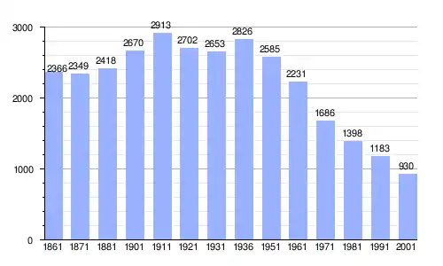 | Gráfica de evolución demográfica de Brallo di Pregola entre 1861 y 2001 |