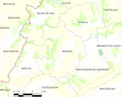 Brassac es una población y comuna francesa, en la región de Mediodía-Pirineos, departamento de Tarn y Garona, en el distrito de Castelsarrasin y cantón de Bourg-de-Visa.