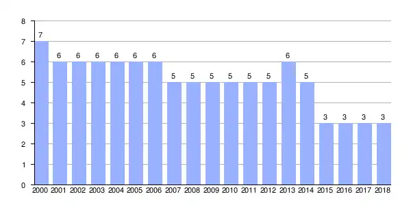 | Gráfica de evolución demográfica de Brijeo entre 2000 y 2018 |