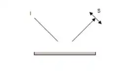 La rugosidad de la superficie en un rango de micrómetros influye en los niveles de reflectancia especular. El diagrama de la derecha muestra la reflexión con un ángulo sobre una superficie rugosa con una altura de rugosidad característica . La diferencia de trayectoria entre los rayos reflejados desde la parte superior e inferior de las protuberancias de la superficie es: