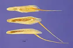 - ↑ (en inglés) Watson L, Dallwitz MJ. (2008). «The grass genera of the world: descriptions, illustrations, identification, and information retrieval; including synonyms, morphology, anatomy, physiology, phytochemistry, cytology, classification, pathogens, world and local distribution, and references». The Grass Genera of the World. Consultado el 19 de agosto de 2009.