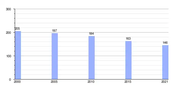 | Gráfica de evolución demográfica de Broza (parroquia) entre 2000 y 2021 |