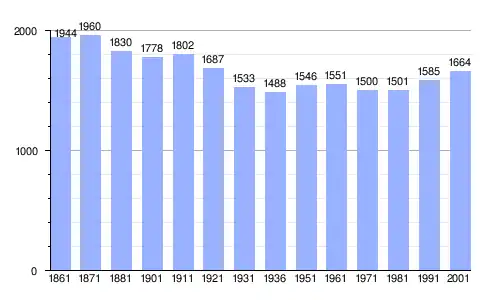 | Gráfica de evolución demográfica de Brusasco entre 1861 y 2001 |