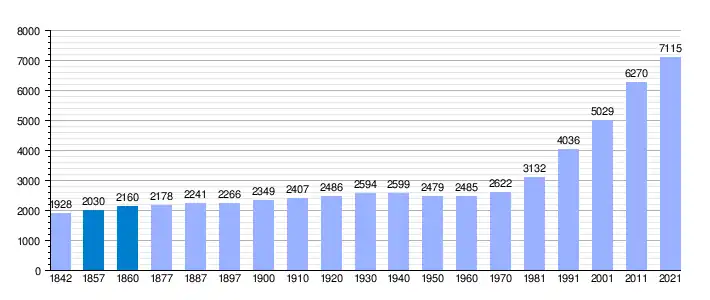 | Gráfica de evolución demográfica de Buñola[4] entre 1842 y 2021 |