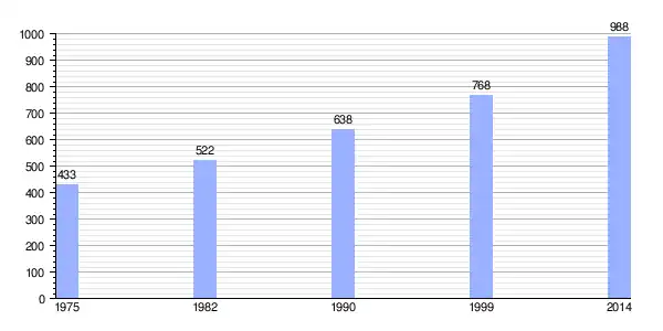 Los datos demográficos contemplados en este gráfico de la comuna de Buis-sur-Damville se han cogido de 1975 a 1999 de la página francesa EHESS/Cassini,[6] y los demás datos de la página del INSEE.[7]