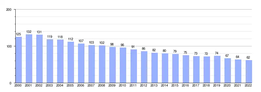 | Gráfica de evolución demográfica de Bullaso entre 2000 y 2022 |