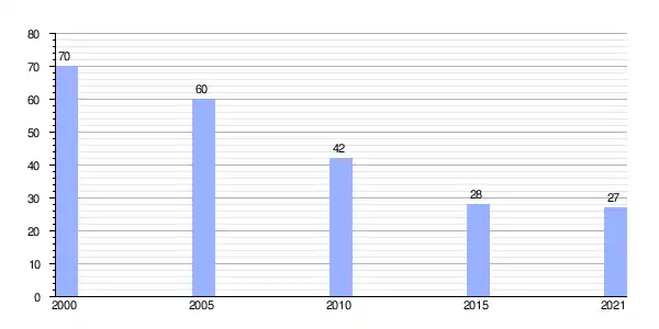 | Gráfica de evolución demográfica de Bulso entre 2000 y 2021 |