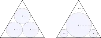 - Relleno con círculos de un triángulo isósceles rectángulo